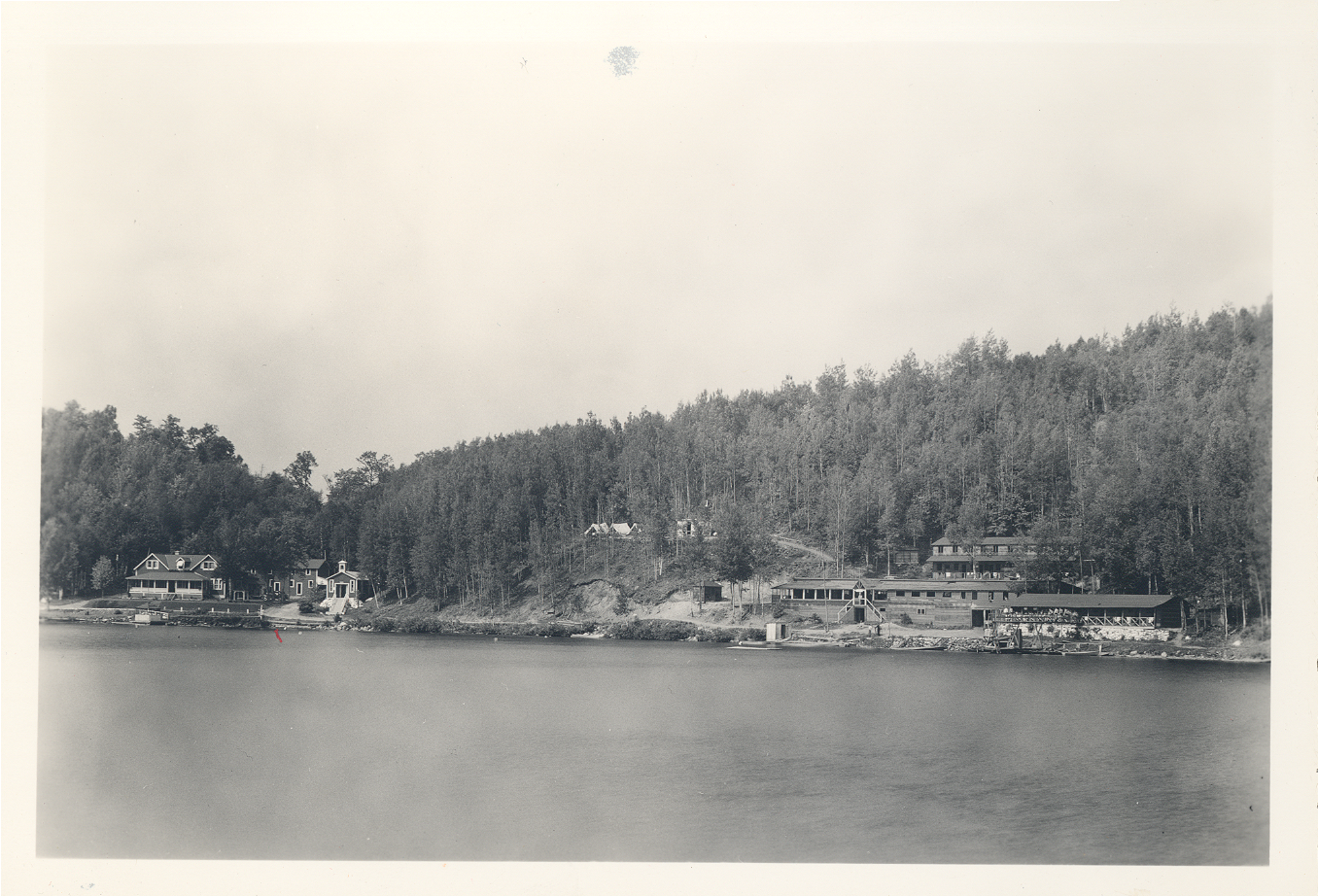 En agrandissant la photo, on voit, à l'extrême gauche, la chapelle ainsi que la maison de l'abbé Jean-Baptiste Vinet, et ses dépendances qui furent démolies pour faire place à l'actuel chalet de Jean et Denise Bissonnette.